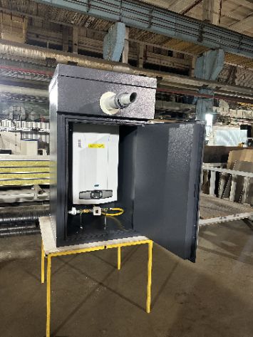 Котлы наружного размещения (КНР) устанавливаются на открытом воздухе на наружной стене здания согласно техническому заданию заказчика и согласованному проекту. Окрашенный металлический корпус обеспечивает надежную защиту котла наружного размещения от воздействия окружающей среды.